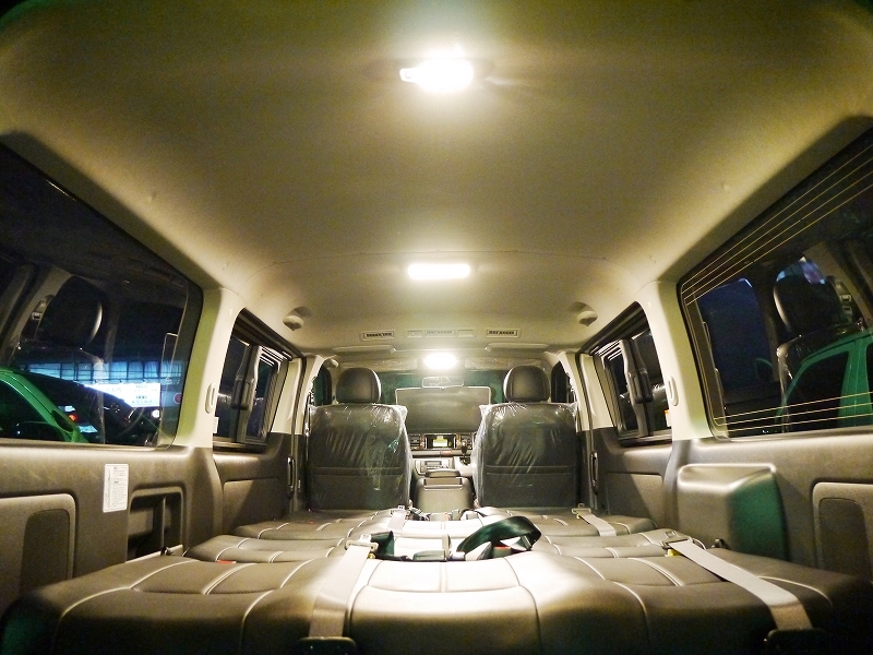 T-REVOシート1200mm幅を2脚装備した8人乗りハイエースです。