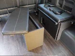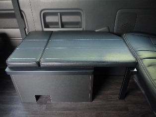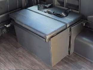 ハイエース内装カスタム:横乗り補助席(フラット展開時)