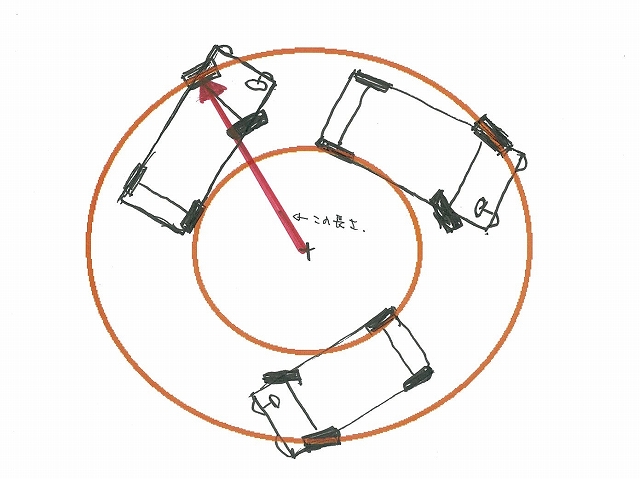 その描いた円の中心から外側の前輪までの長さ、