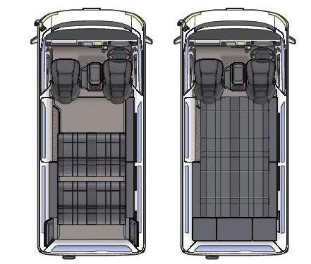 ●左側が走行時の乗車するレイアウト(4列目横乗りは跳ね上げた状態)